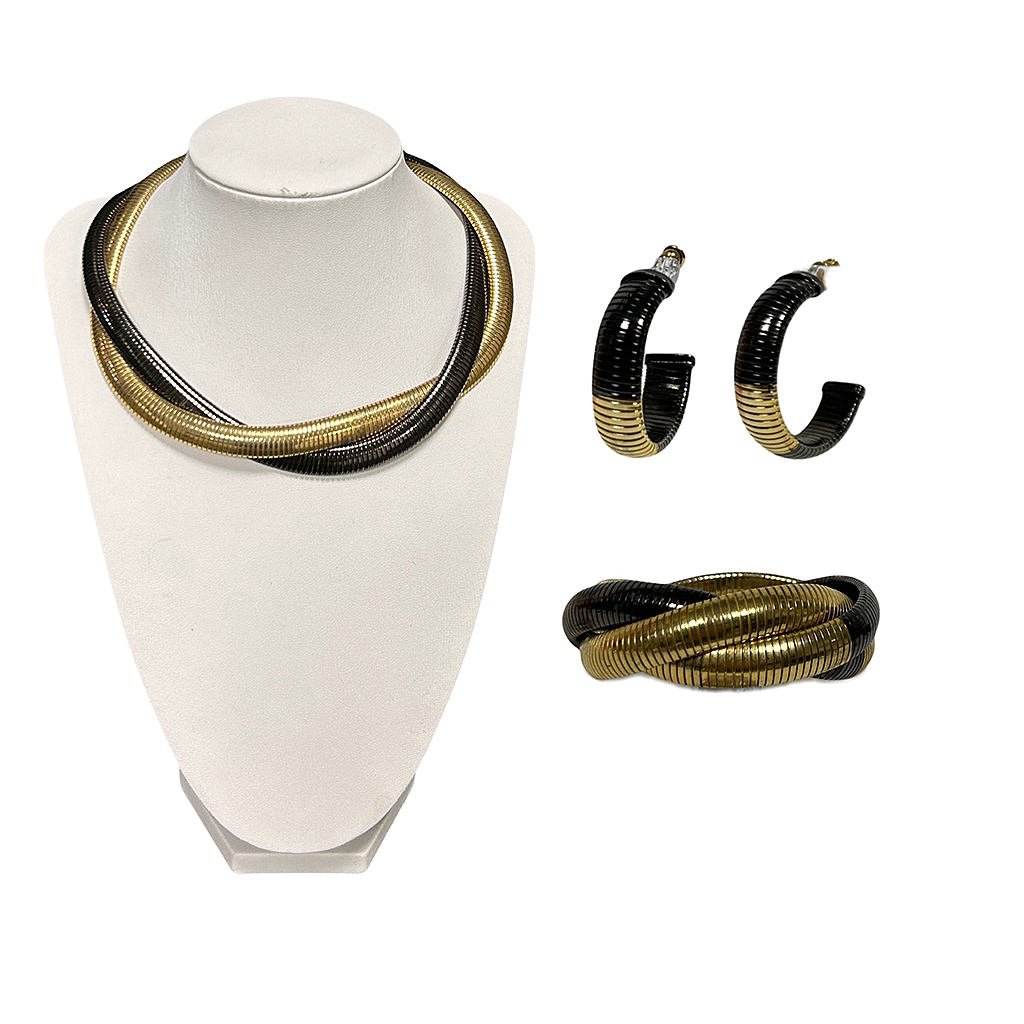 GOLD AND BLACK MESH COLLAR NECKLACE WITH MATCHING BRACELET AND EARRINGS