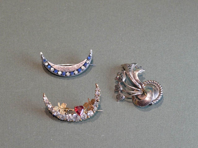GOLD AND SILVER BROOCH WITH PASTE
