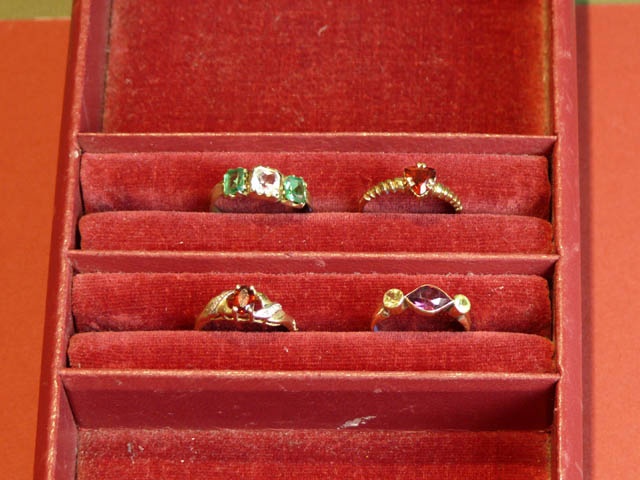 GOLD LADIES RING WITH MULTI COLOURED STONES