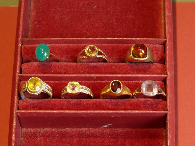 GOLD LADIES RING WITH SINGLE COLOURED STONE