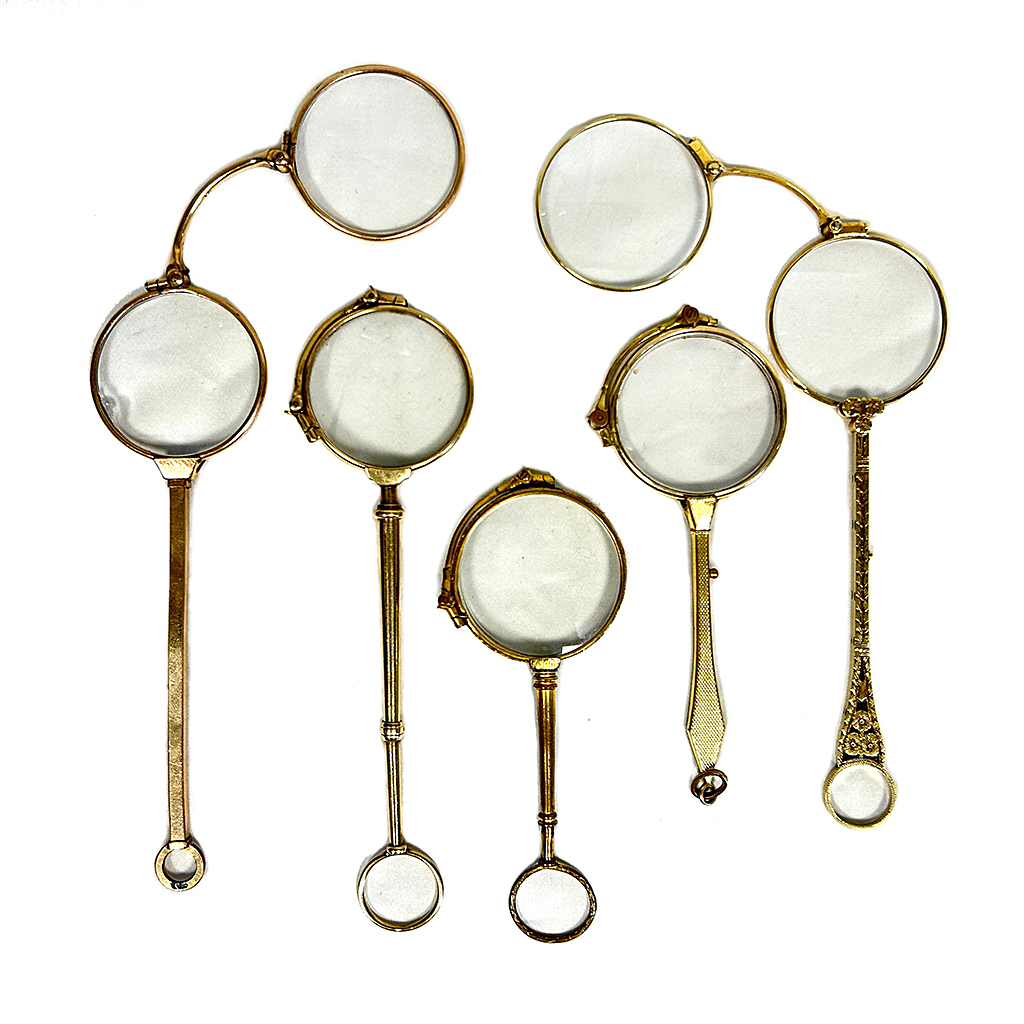 GOLD / GOLD PLATED LORGNETTES / SPECTACLES WITH LONG HANDLE AS LISTED