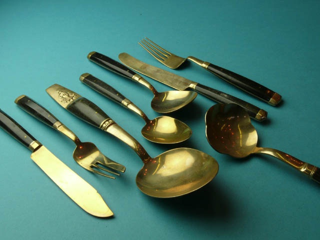 GOLD PEPPER CUTLERY WITH BLACK HANDLE AS LISTED