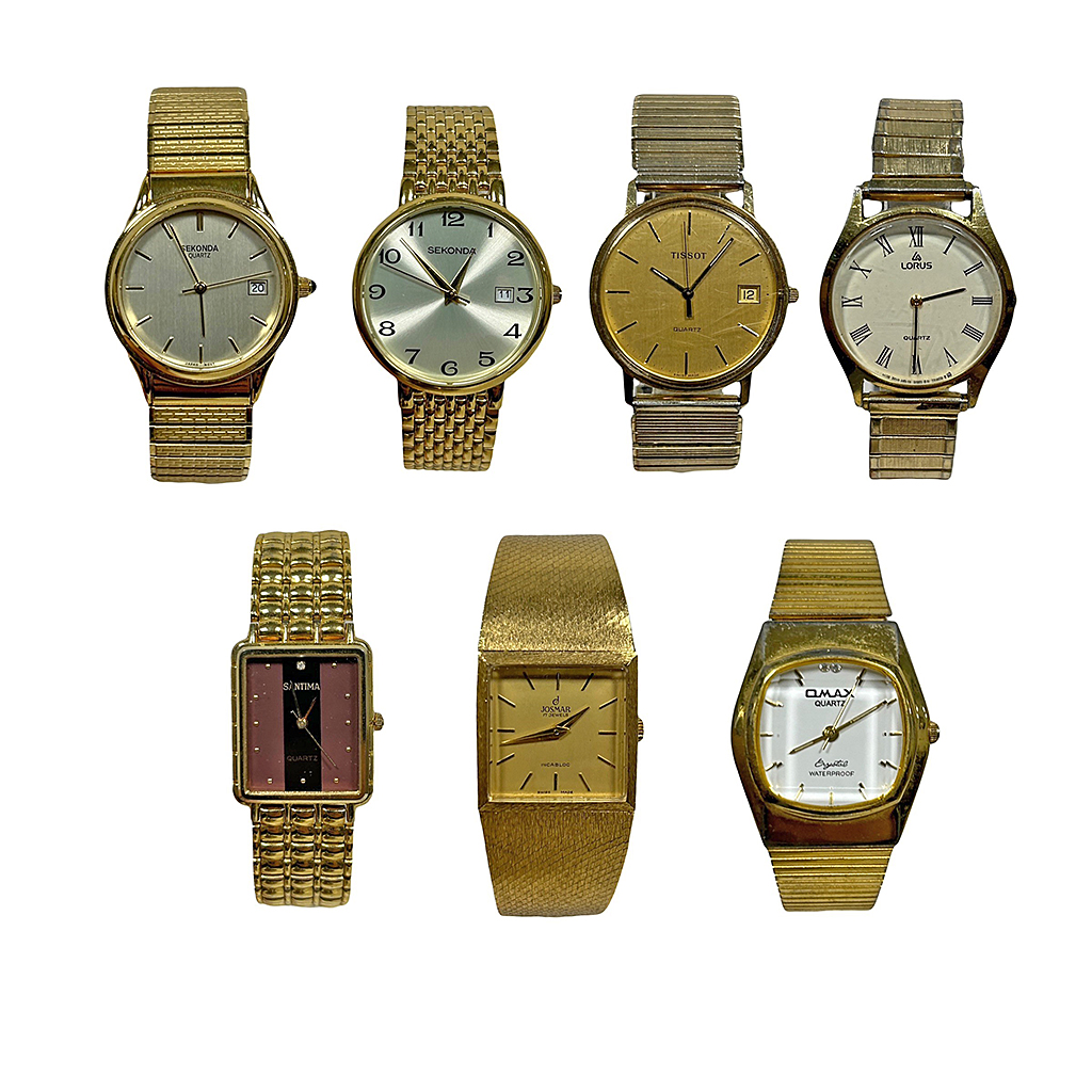 MODERN GOLD PLATED / GILT MAN'S WRIST WATCH WITH DECORATIVE MATCHING STRAP