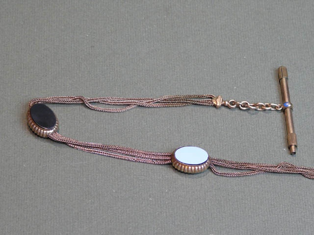 GOLD WATCH CHAIN WITH BLUE AND BLACK STONES