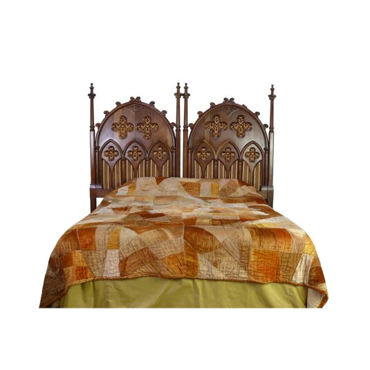 GOTHIC REVIVAL DOUBLE BED CARVED MAHOGANY WITH DOUBLE ARCH HEADBOARD COMPLETE WITH DEVAN AND MATTRESS CIRCA 1870 185 CM HIGH 222 CM WIDE 205 CM LONG