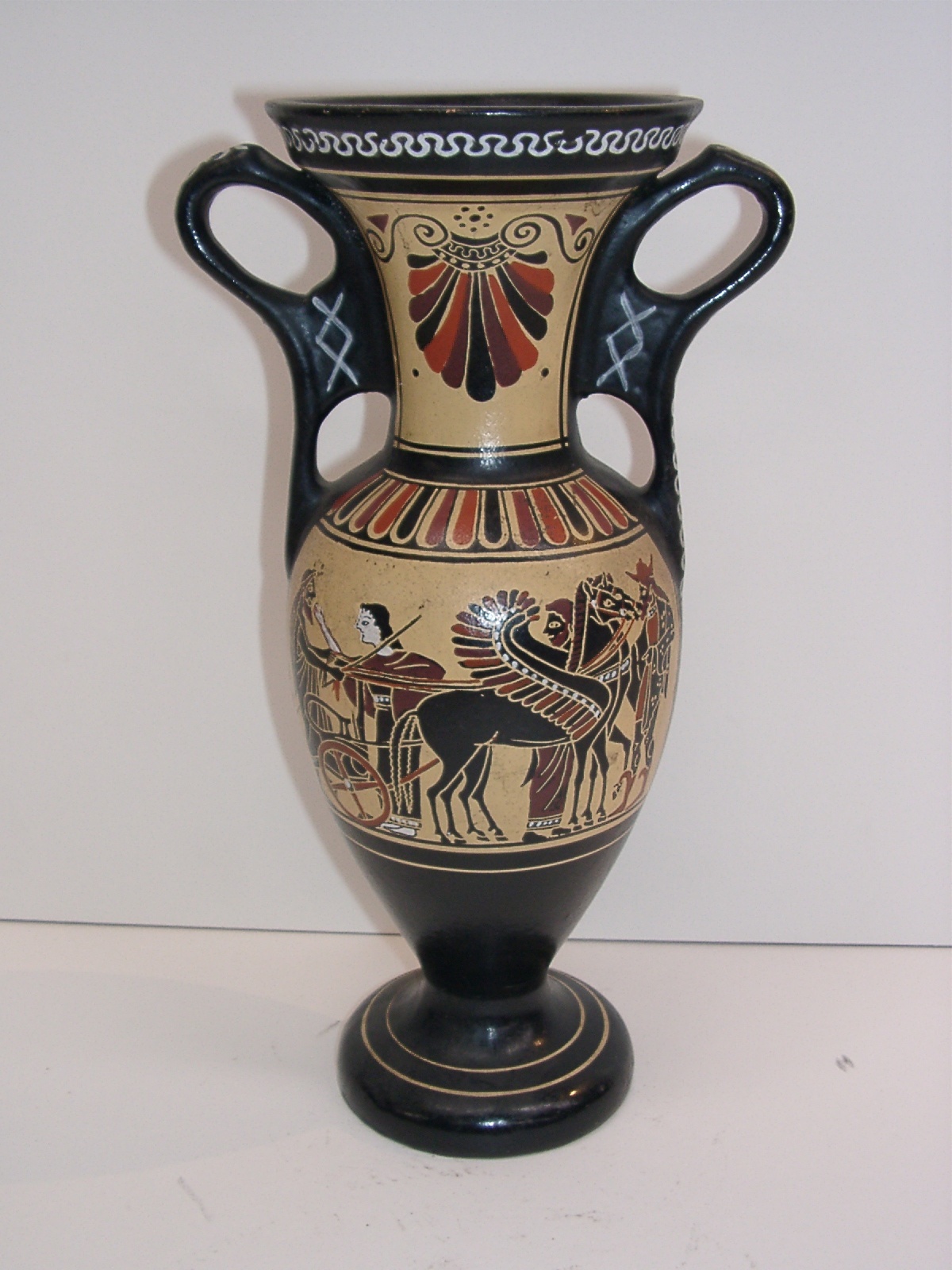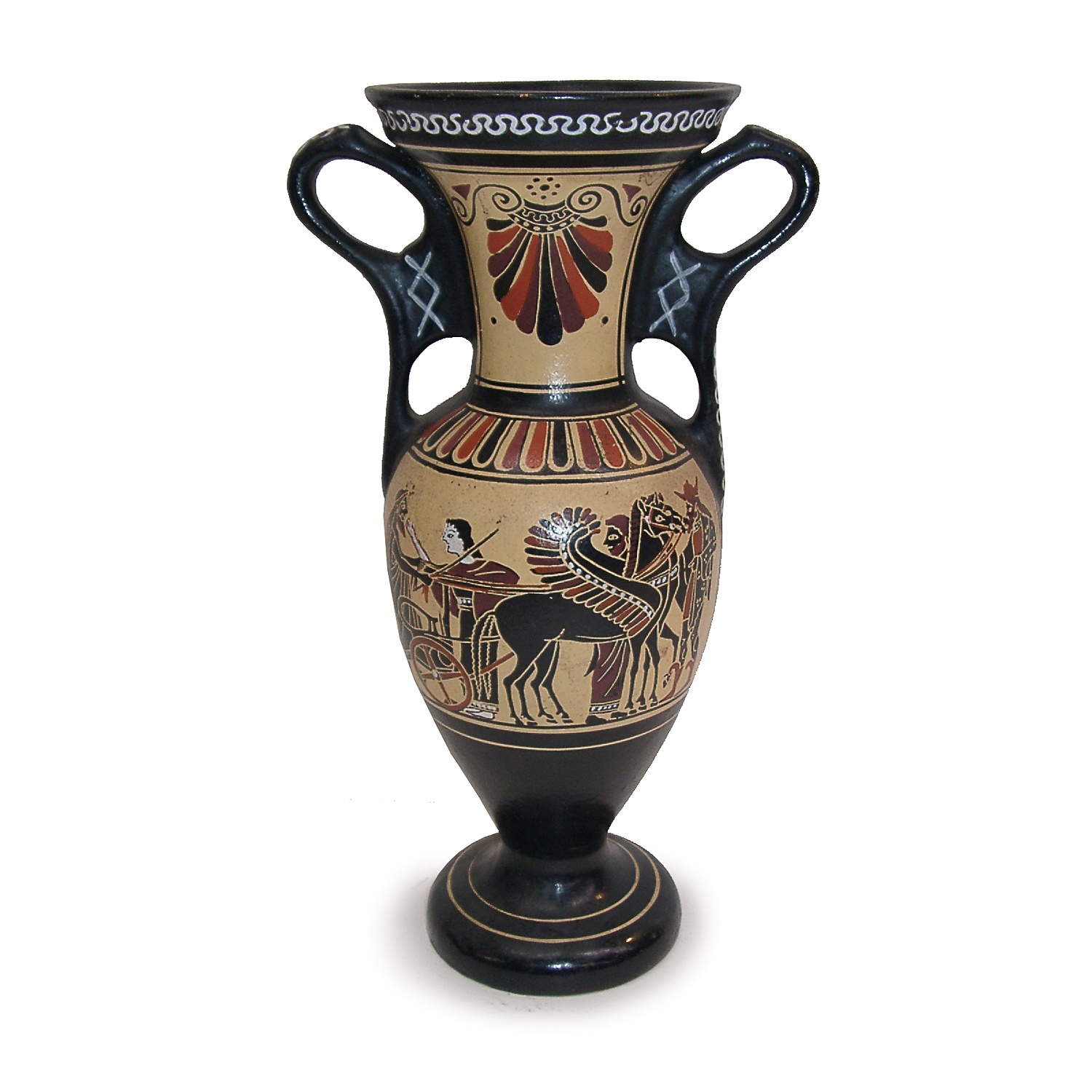 GRECIAN STYLE BLACK AND CREAM VASE LOOP HANDLE 10/i-16/i HIGH (X5)