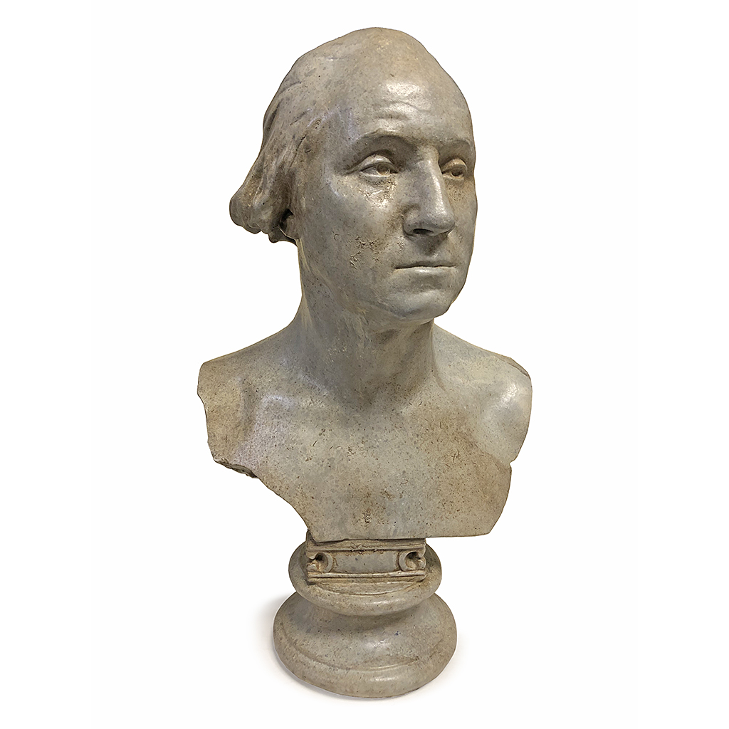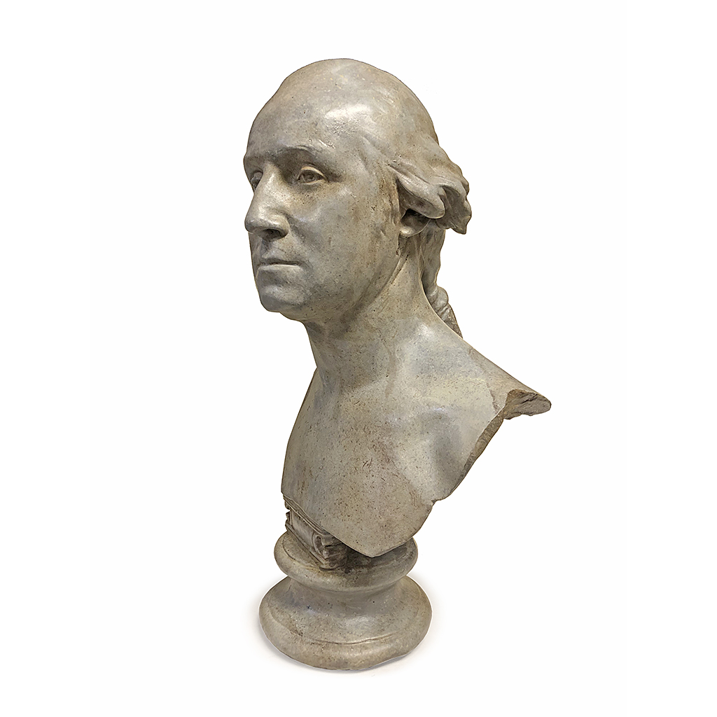 GREY LIFE SIZE PLASTER BUST OF GEORGE WASHINGTON 61 CM GIGH 38 CM WIDE 32 CM DEEP