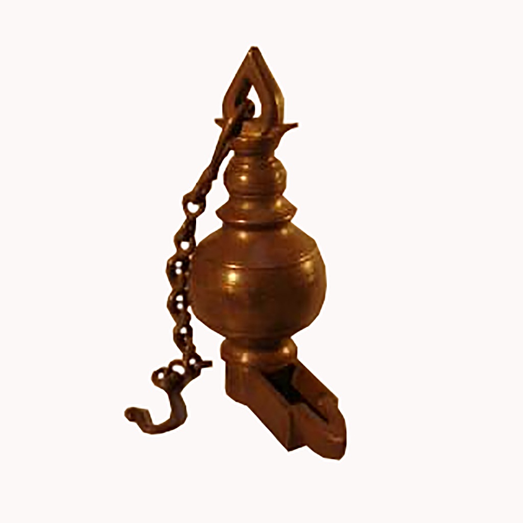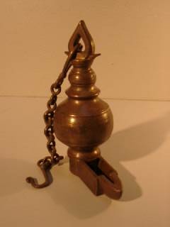 HEAVY BRONZE SOUTH INDIAN L SHAPED OIL LAMP WITH SHORT CHAIN 19TH C.