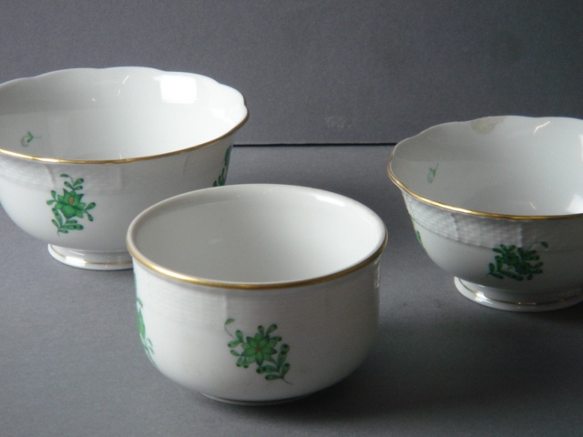 HEREND ASSORTED SUGAR / JAM BOWL WHITE CHINA WITH GREEN PATTERN (X4)