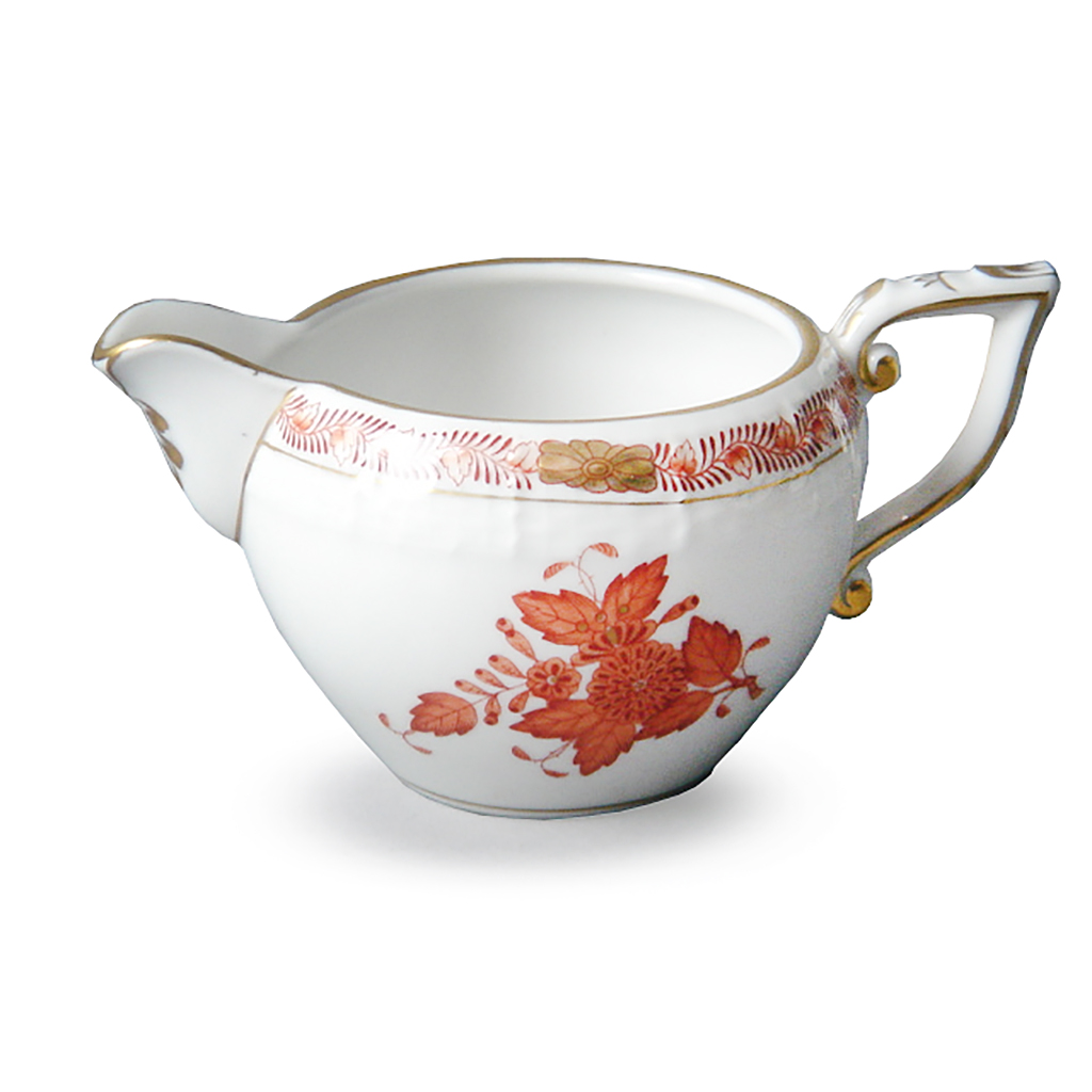 HEREND CREAM JUG WHITE CHINA WITH ORANGE DECORATION