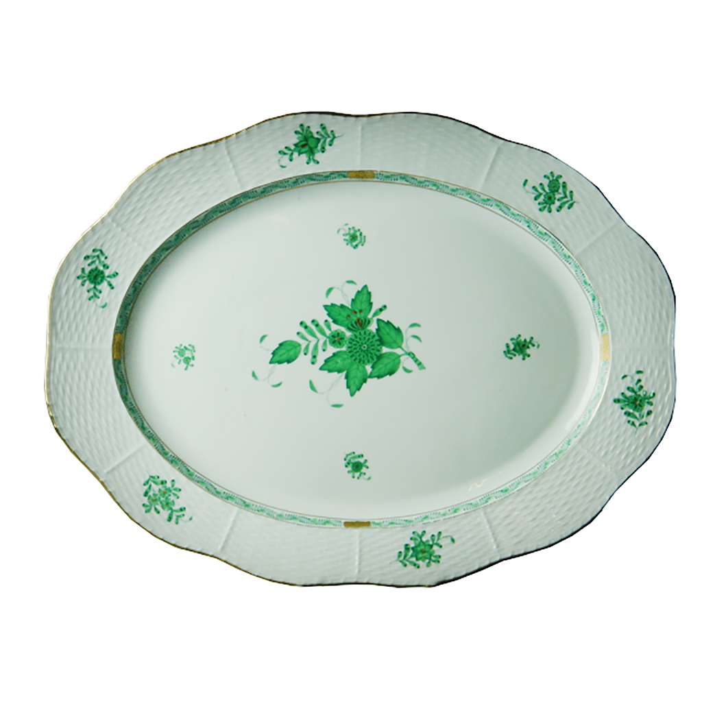 HEREND LARGE OVAL PLATTER WHITE CHINA WITH GREEN PATTERN 16" 41 CM (X4)