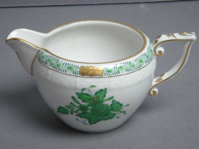 HEREND MEDIUM CREAM JUG WHITE CHINA WITH GREEN PATTERN