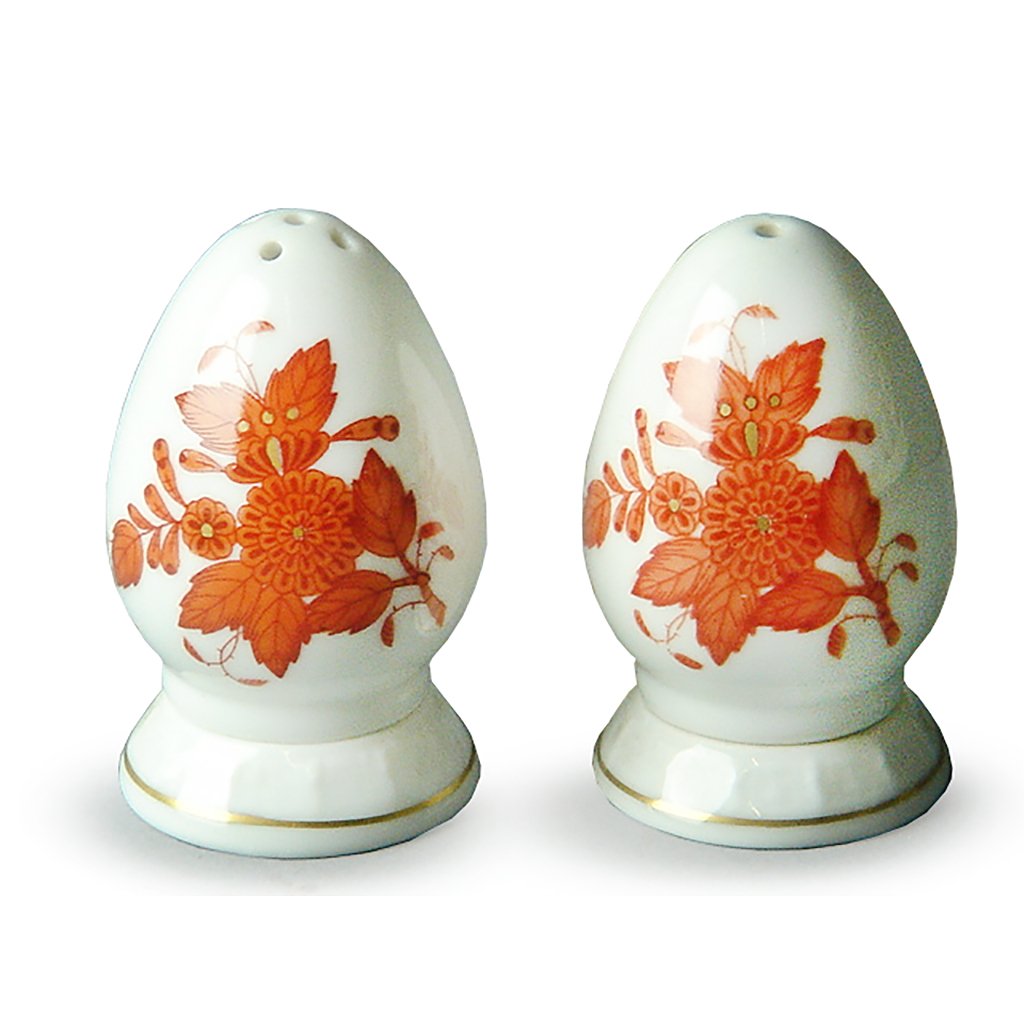 HEREND SALT AND PEPPER SHAKER WHITE CHINA WITH ORANGE DECORATION