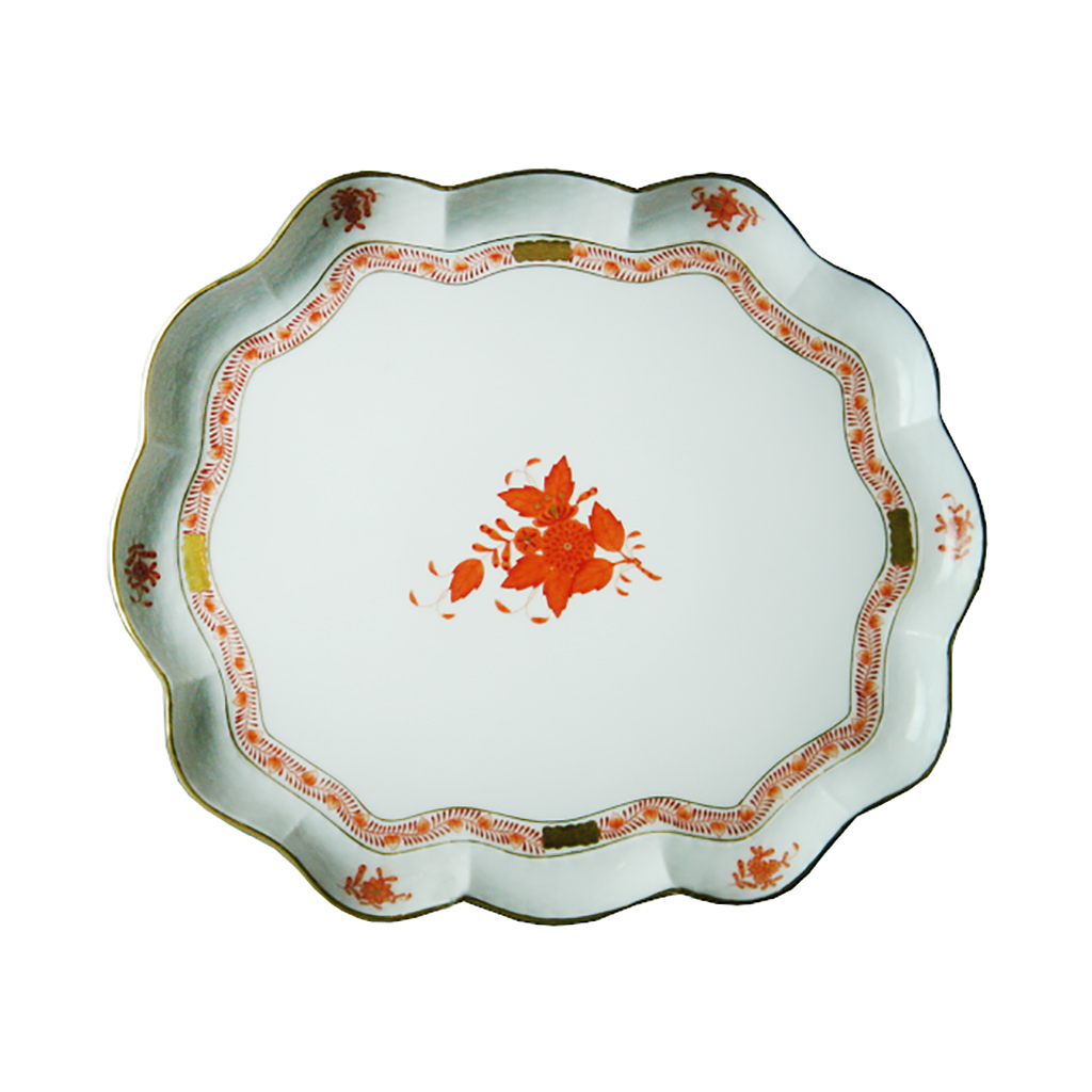 HEREND SHAPED PLATTER WHITE CHINA WITH ORANGE DECORATION