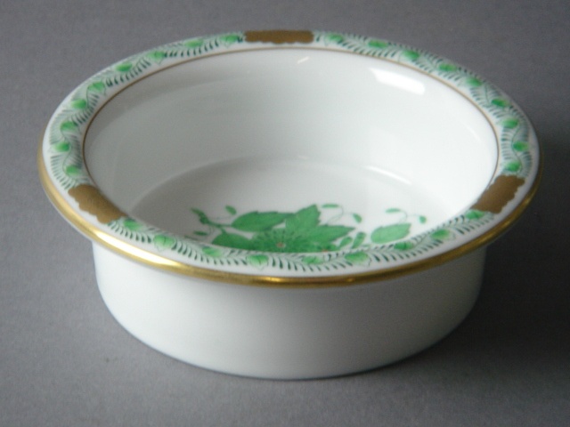 HEREND SMALL CIRCULAR DISH WHITE CHINA WITH GREEN PATTERN