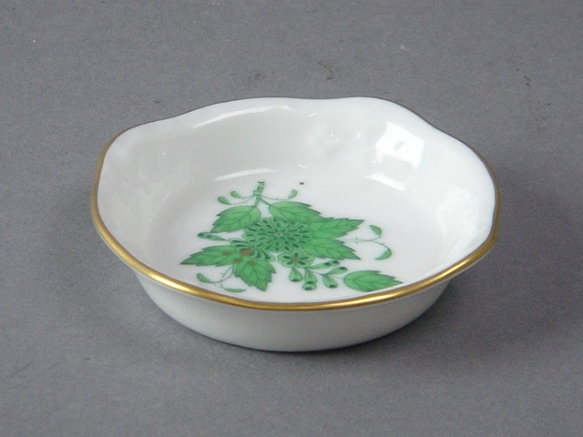 HEREND TINY CIRCULAR DISH WHITE CHINA WITH GREEN PATTERN (X3)