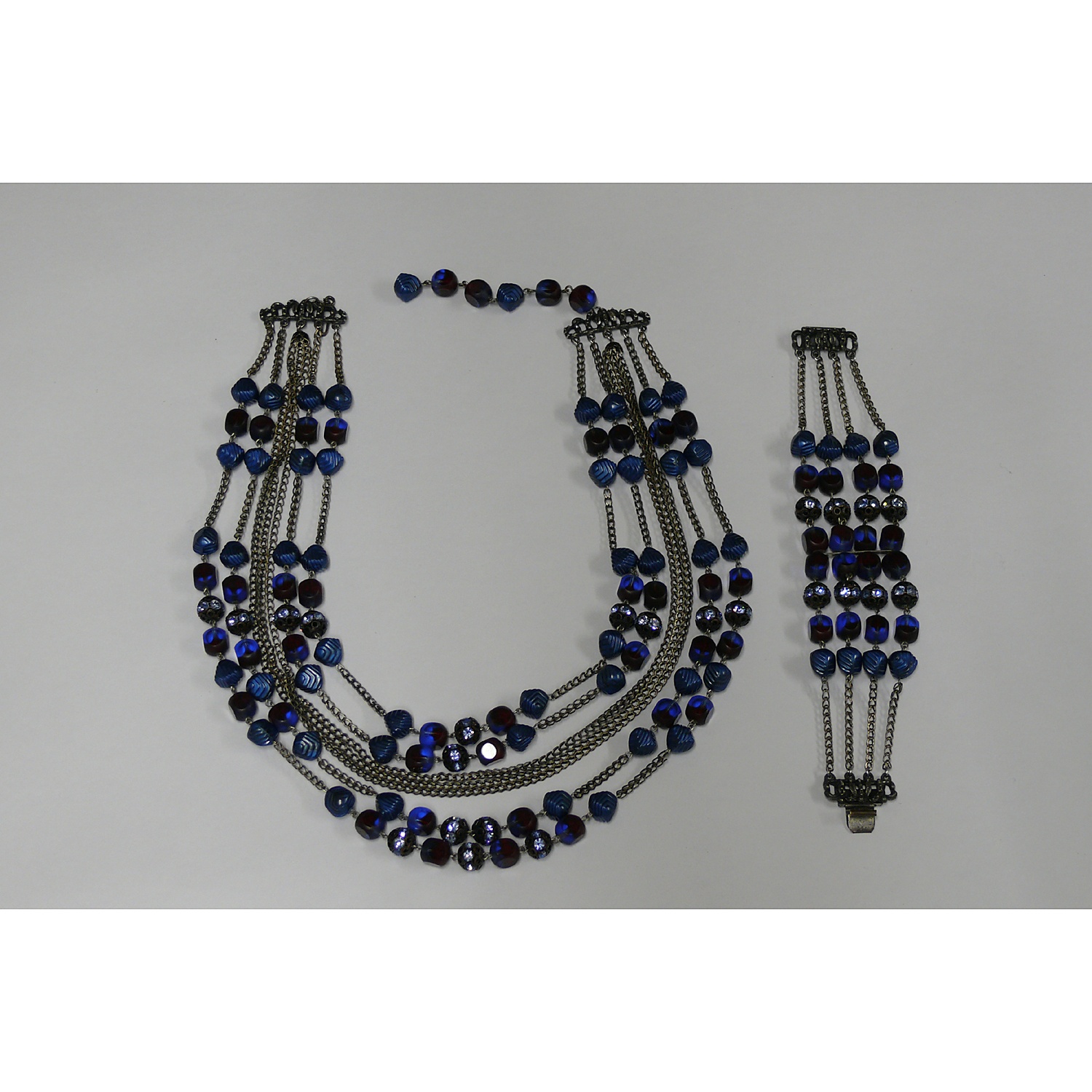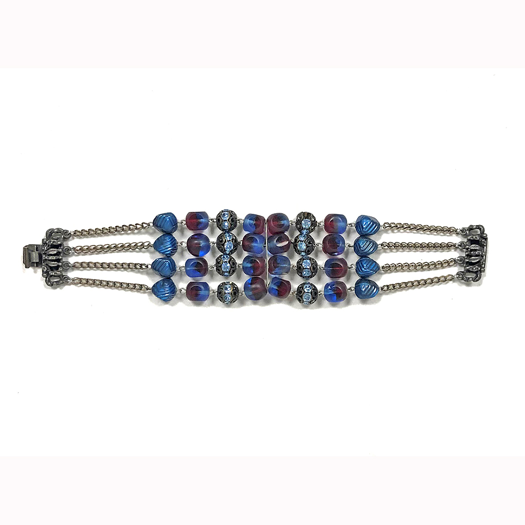HOBE BRACELET WITH BLUE AND MAROON GLASS BEADS SET BETWEEN CHAINS AMERICAN SIGNED (PART OF A SET WITH MATCHING NECKLACE PGNE10214)
