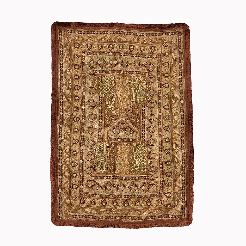 INDIAN TABLE CLOTH / RUG EMBROIDERED SILK WITH RASPBERRY FRINGE TRIM 152 CM X 105 CM
