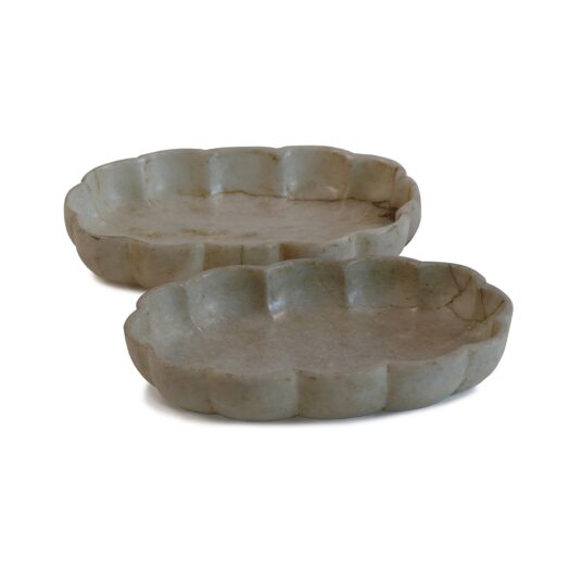 INDIAN WHITE MARBLE SCALLOPED DISH OVAL 17 CM WIDE