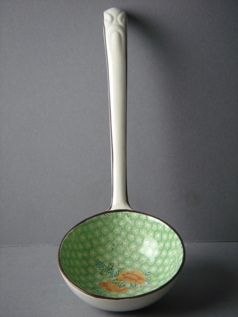 IRONSTONE CORNELIA SOUP LADLE PALE GREEN BUTTERFLY PAT. (X2)