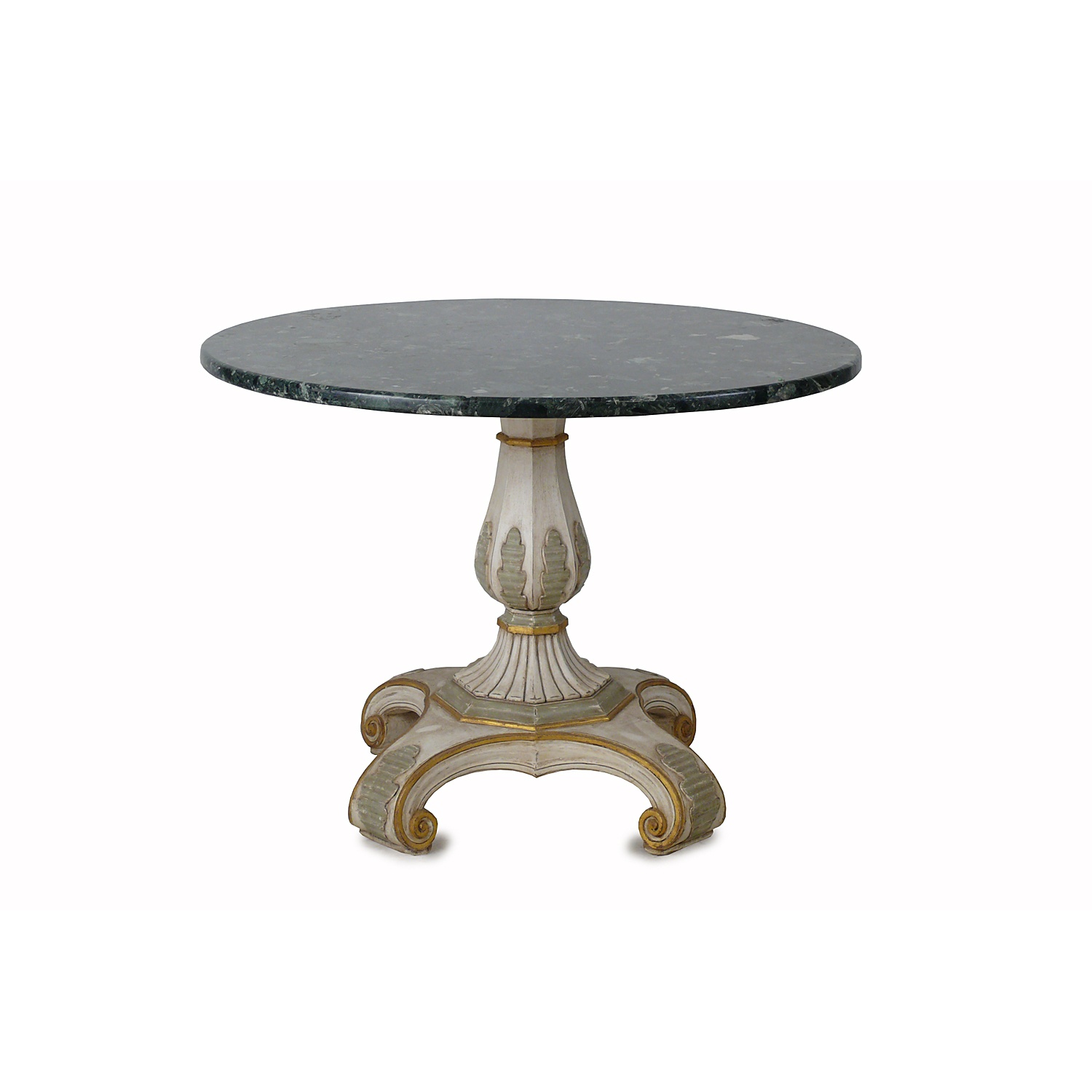 ITALIAN CIRCULAR CENTRE TABLE CARVED AND CREAM PAINTED PEDESTAL BASE WITH A GREEN VERDE ANTIQUO MARBLE TOP 76 CM HIGH 96 CM DIAM