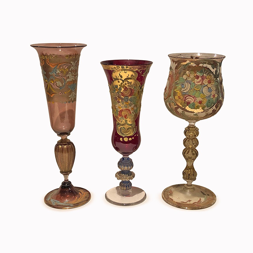 ITALIAN DECORATED AMBER / RUBY WINE GLASS AS SELECTE 19 CM - 22 CM HIGH