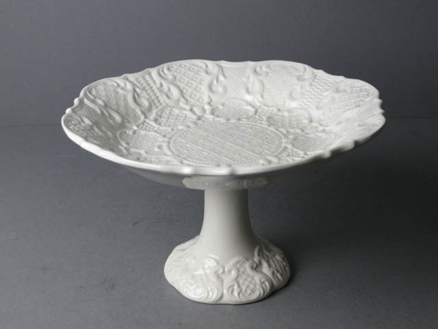 ITALIAN DECORE CAKE STAND / COMPORT SALT GLAZED WHITE RELIEF PAT. 25 CM DIAM. (X4)