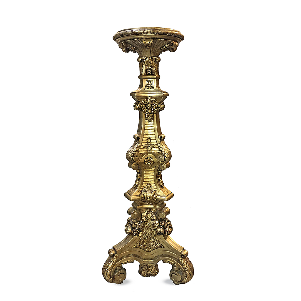ITALIAN FAUX TORCHER / PEDESTAL TRI LEG BASE 18TH CENT STYLE GILT PAINTED 155 CM HIGH (X16)