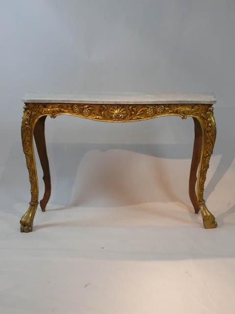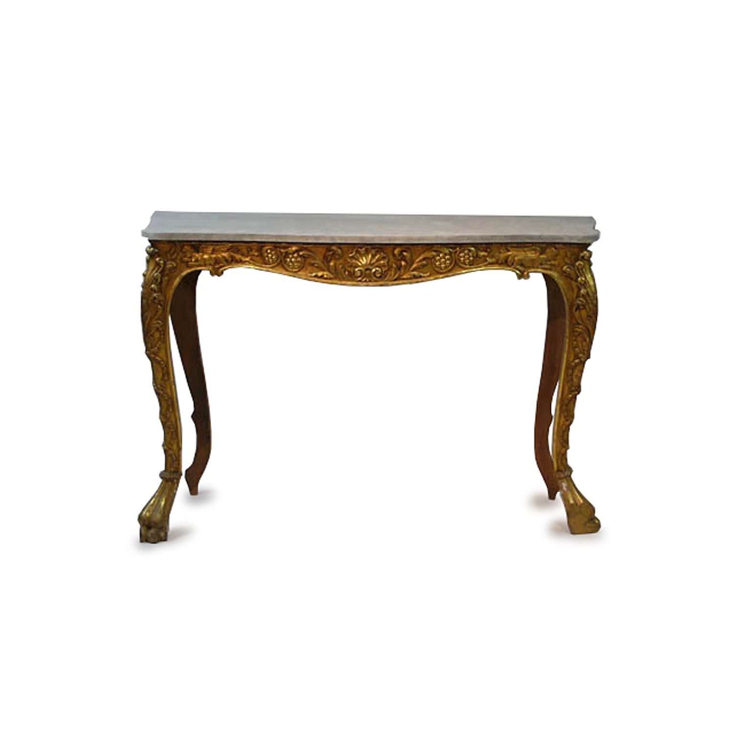 ITALIAN GILT WOOD SERPENTINE CONSOLE TABLE GREY FAUX MARBLE TOP 46/i LONG X 31/i HIGH X 16/i DEEP