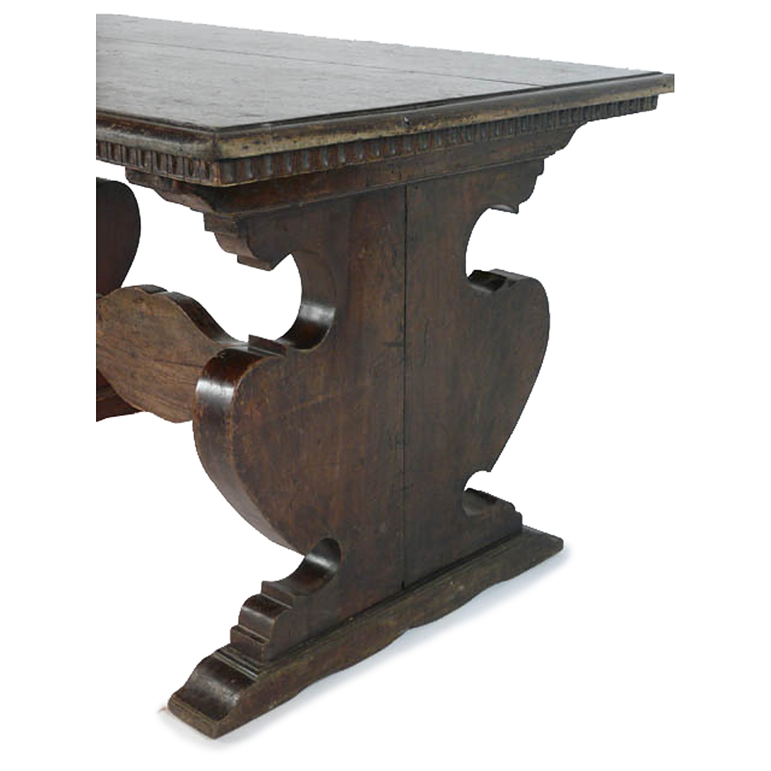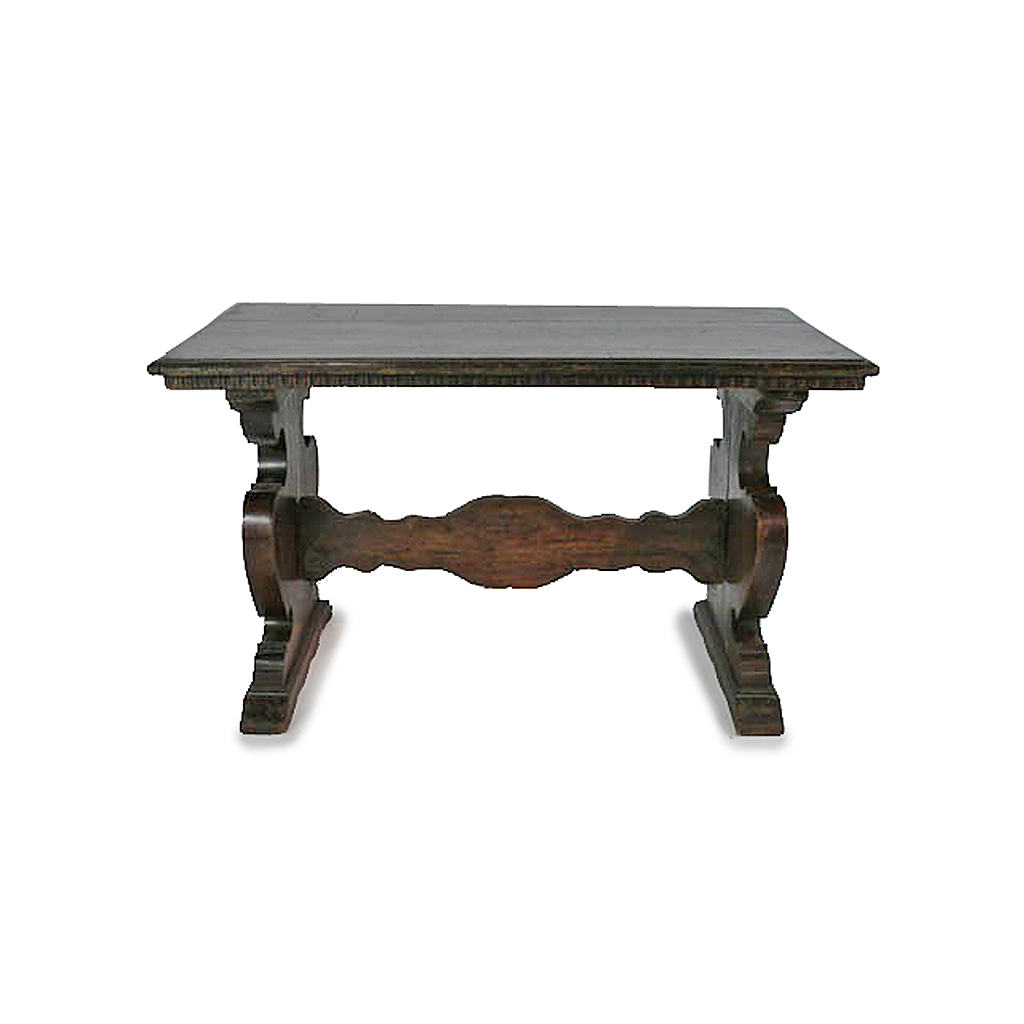 ITALIAN RENAISSANCE SIMPLE DARK WALNUT HEAVY LYRE END TABLE 16TH CENT STYLE 81 CM HIGH 142 CM LONG 88 CM WIDE