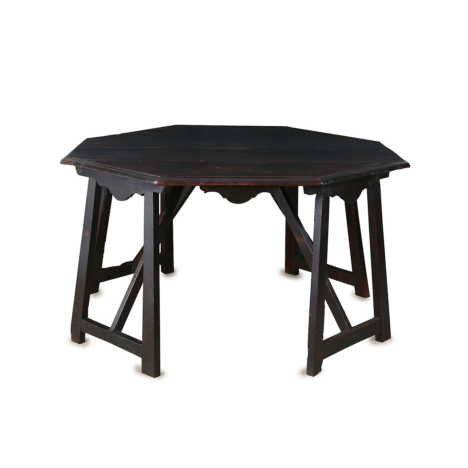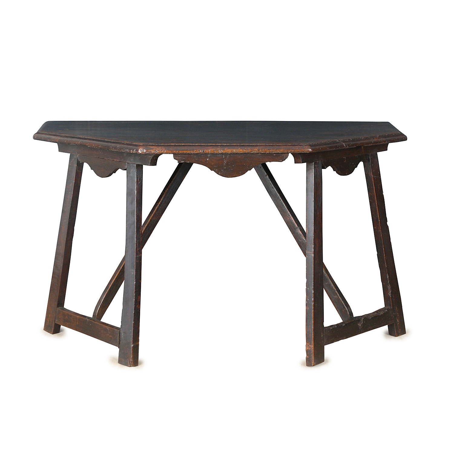 ITALIAN TUSCAN CONSOLE TABLE DARK WALNUT WITH SPLAYED LEGS EARLY 18TH CENT 133 CM WIDE 74 CM HIGH 63 CM DEEP (X2)