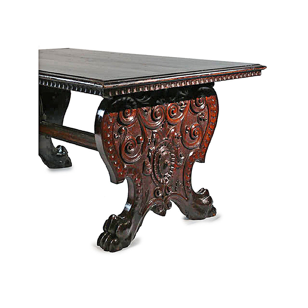 ITALIAN / TUSCAN ORNATE CARVED WALNUT TABLE LYRE SHAPED SUPPORTS MID 16TH CENT. 163 CM LONG 97 CM WIDE 75 CM HIGH
