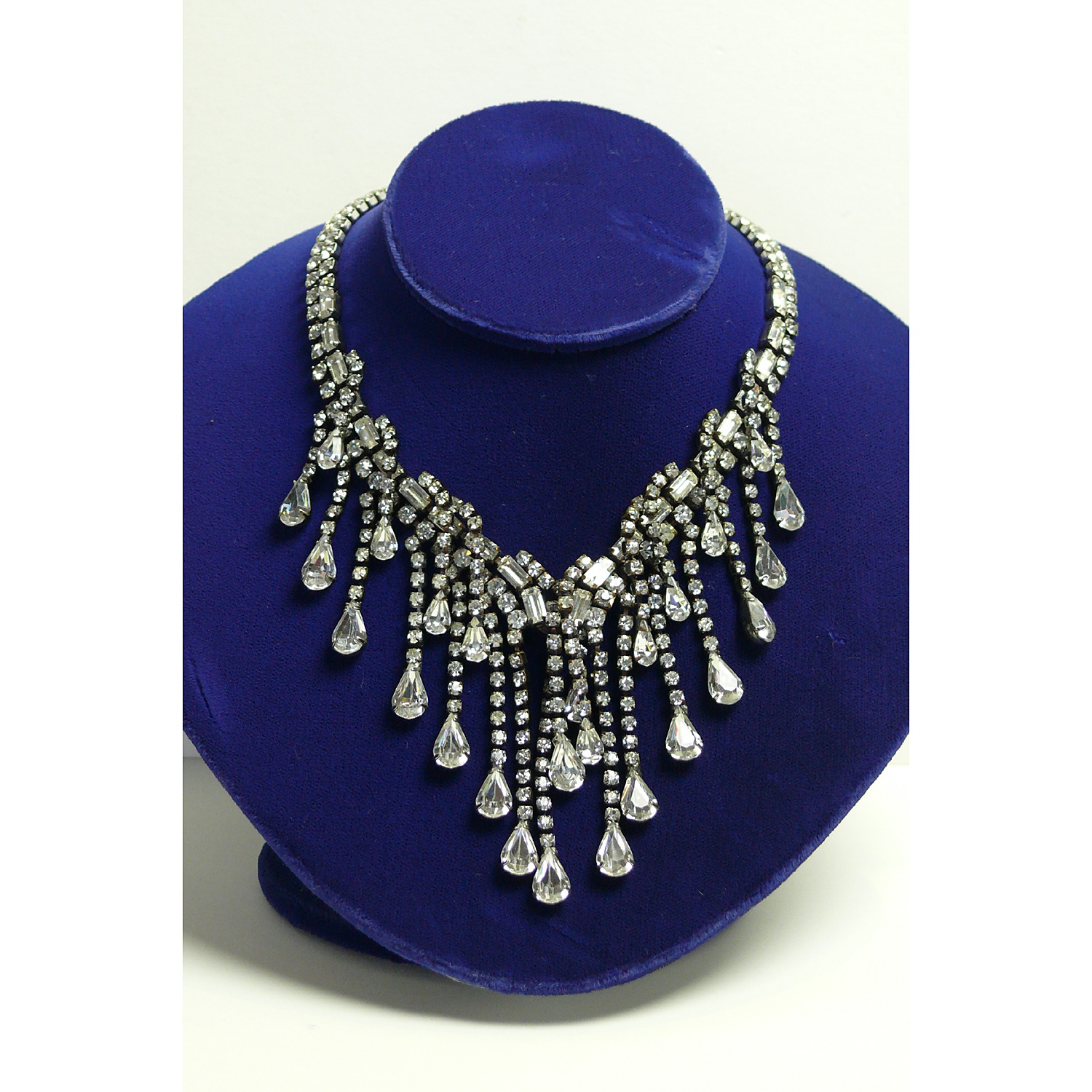 JACQUARD PASTE WATERFALL NECKLACE SIGNED CASTLECLIFF