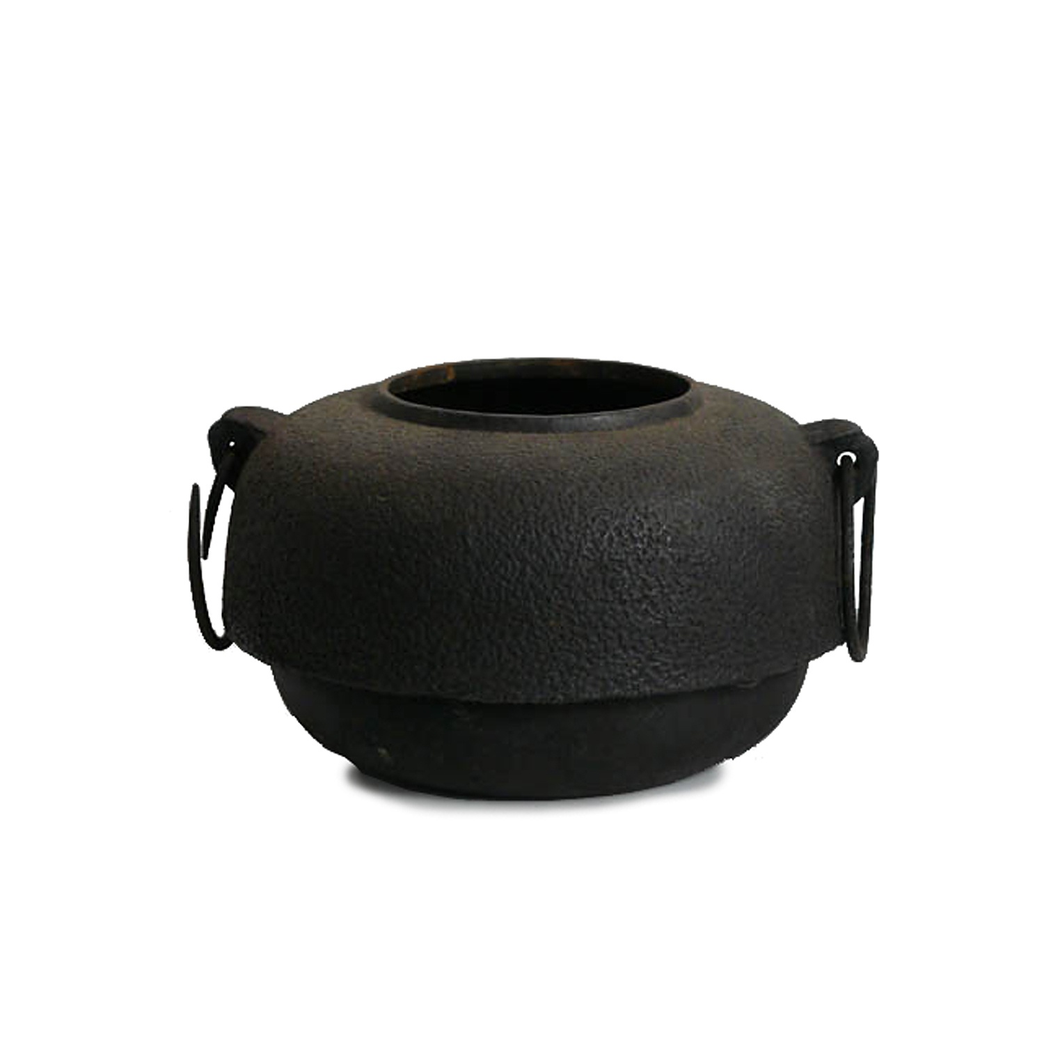 JAPANESE BLACK IRON POT WITH TWO RING HANDLES 22 CM DIAM.