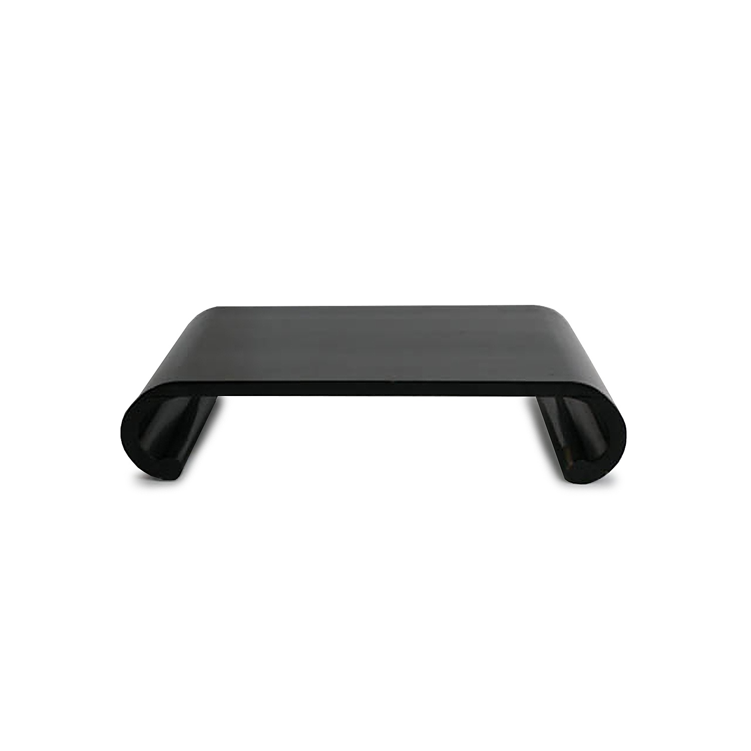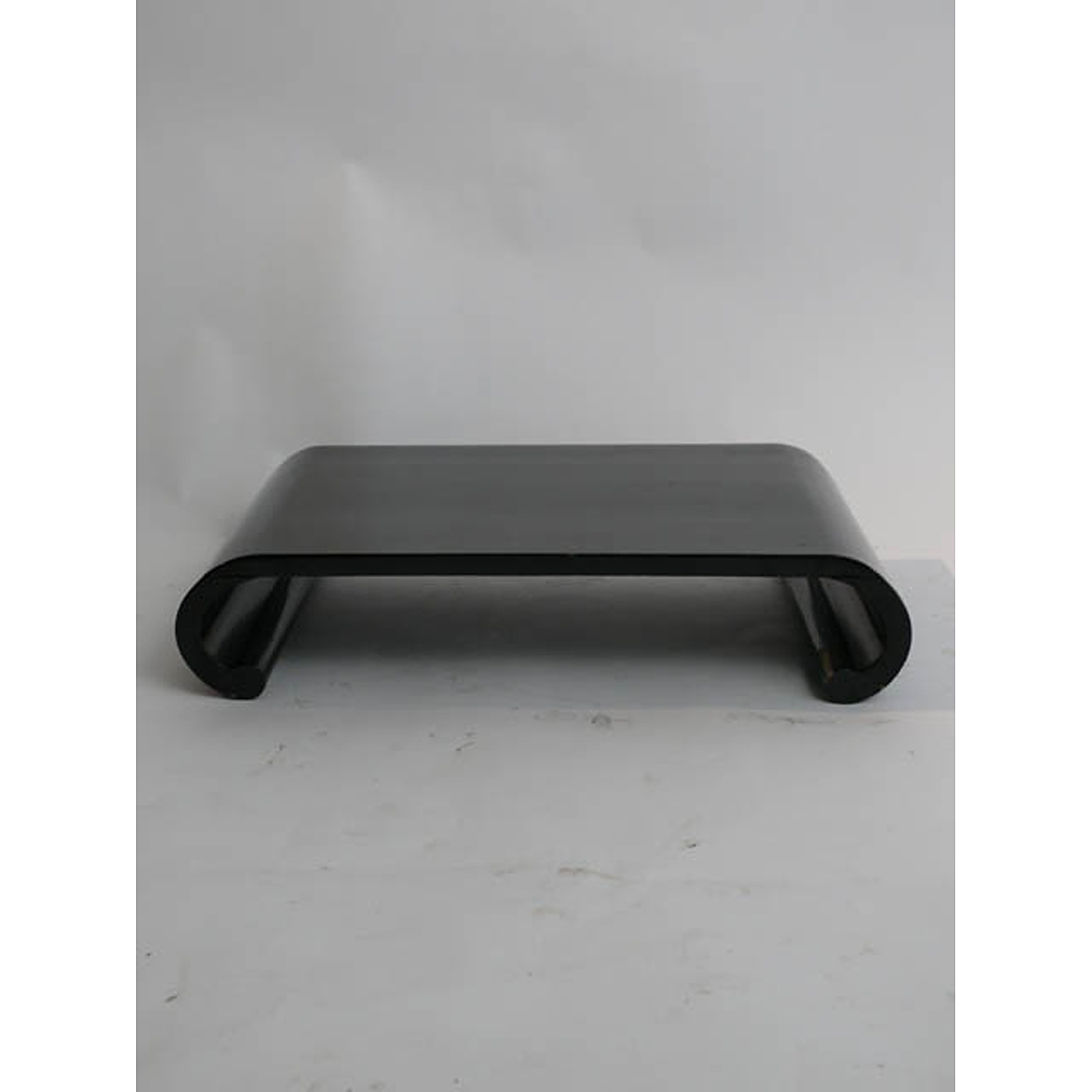 JAPANESE BLACK LACQUER LOW TABLE / STAND WITH SCROLL ENDS 11 CM HIGH 53 CM LONG 33 CM DEEP