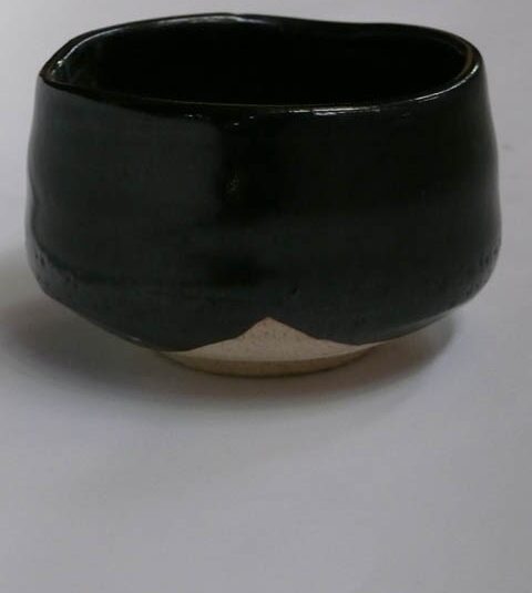 JAPANESE BLACK STUDIO POTERY BOWL 11 CM DIAM.