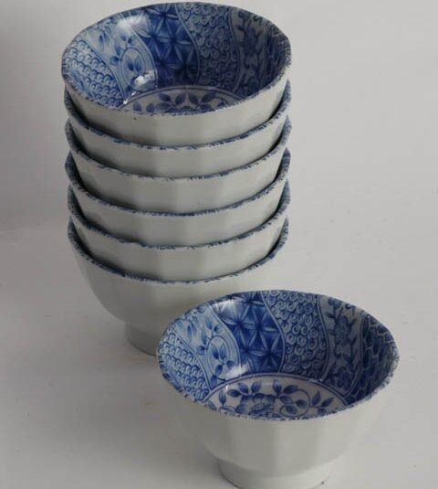 JAPANESE BLUE AND WHITE CHINA BEAKER CUP 10 CM DIAM. (X12)