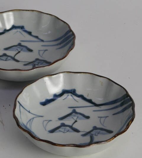 JAPANESE BLUE AND WHITE SHALLOW BOWL 15 CM DIAM. (X22)