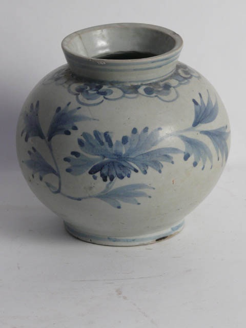JAPANESE BLUE AND WHITE VASE BALL SHAPE 20 CM HIGH