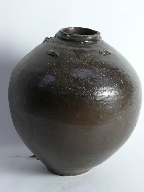 JAPANESE BROWN GLAZED VASE BULBOUS WITH NARROW NECK 39 CM HIGH