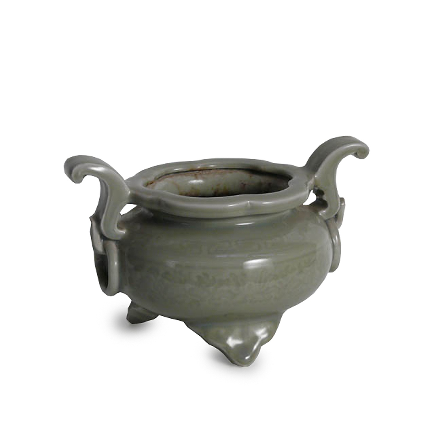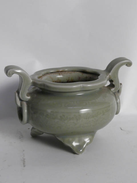 JAPANESE CELADON GREEN CHINA INCENSE VASE 14 CM HIGH