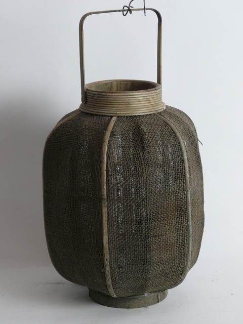 JAPANESE HESSIAN AND BAMBOO LANTERN 38 CM HIGH