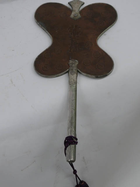 JAPANESE LARGE WAR FAN / PADDLE COPPER WITH WOOD HANDLE