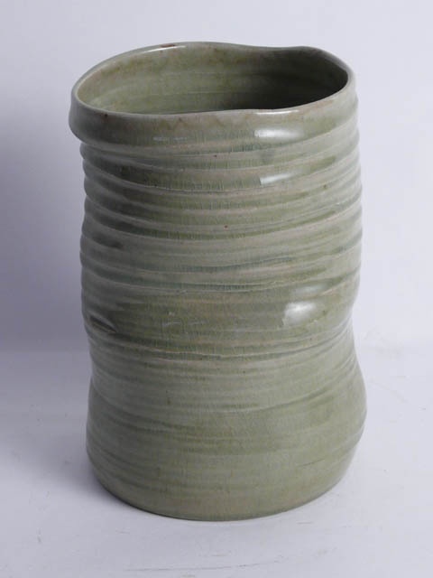 JAPANESE PALE GREEN EARTHENWARE VASE HAND TURNED 24 CM HIGH