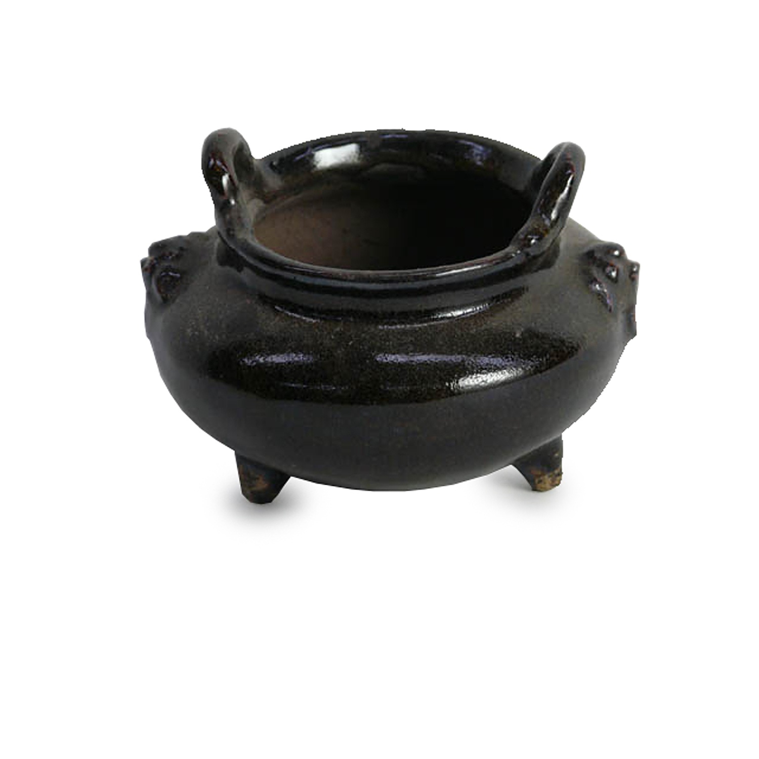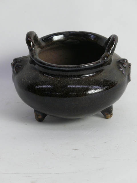 JAPANESE SMALL BROWN GLAZED EARTHENWARE POT / VASE 10 CM HIGH
