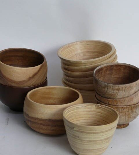 JAPANESE SMALL WOODEN BOWL AS SELECTED 10 CM - 14 CM DIAM. (X11)