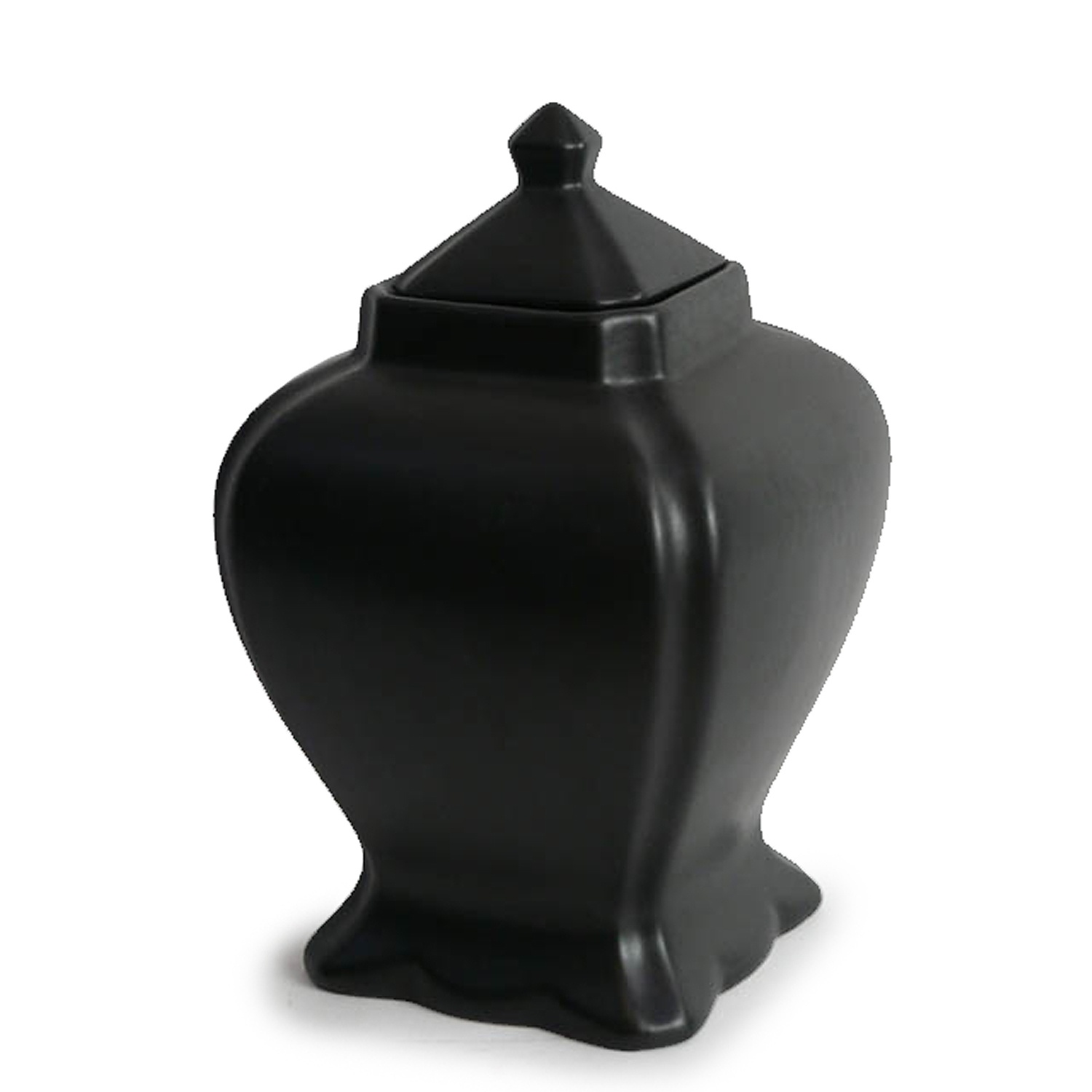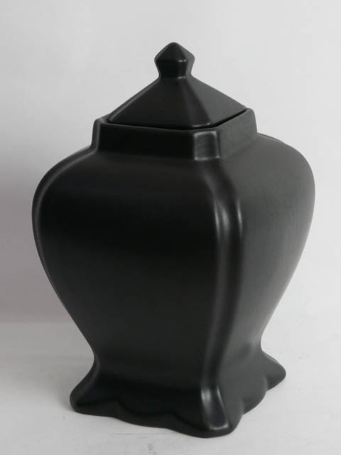 JAPANESE SQUARE SHAPED BLACK VASE AND LID 37 CM HIGH