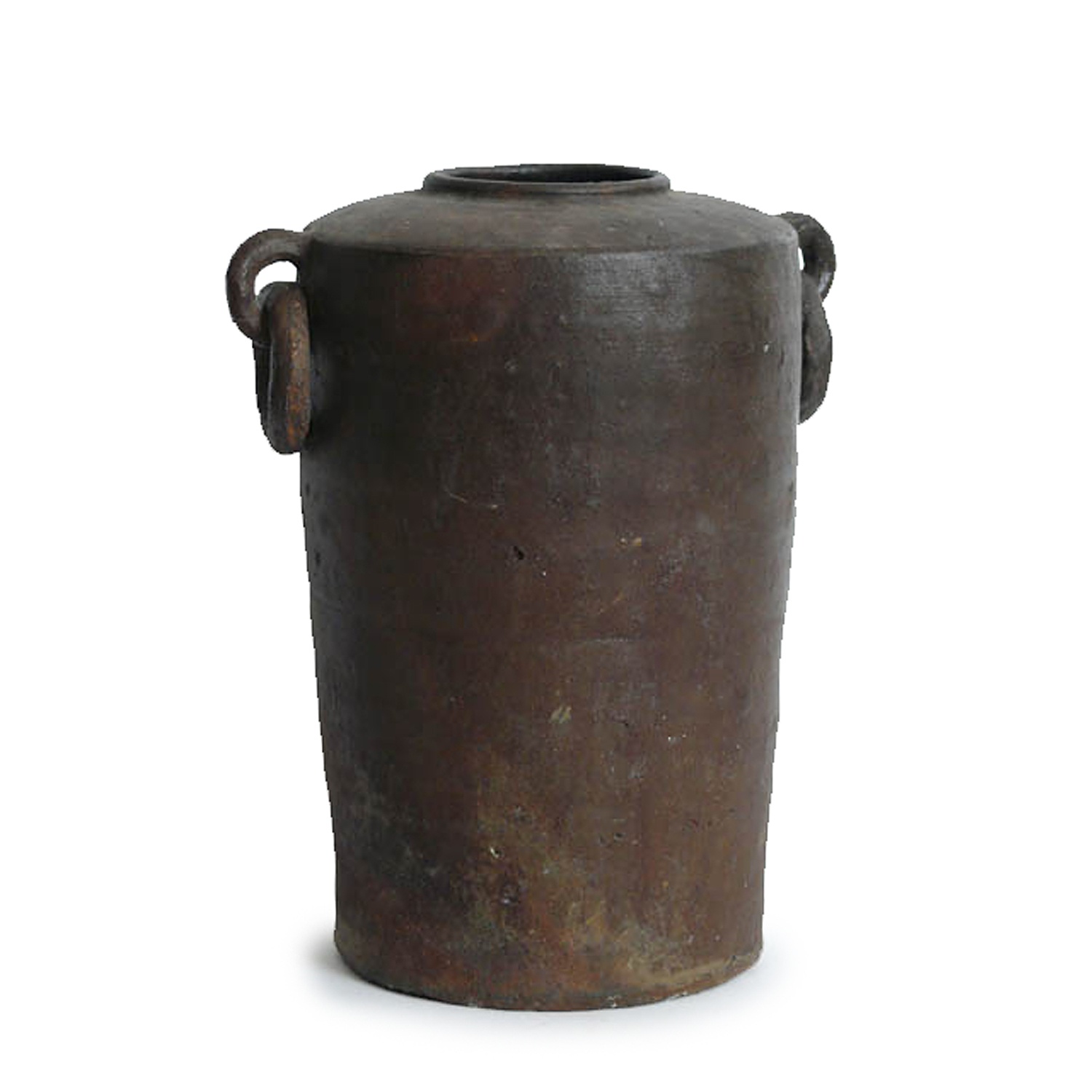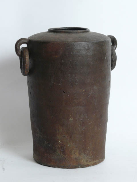 JAPANESE TERRACOTTA FUNERY URN WITH RING HANDLES 24 CM HIGH