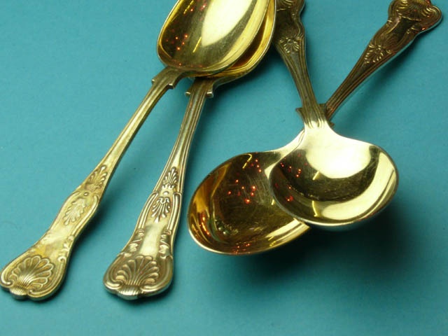 KINGS PAT. SILVER GILT DESSERT SPOON