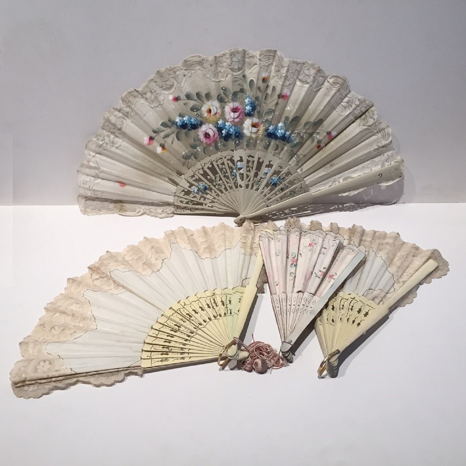 LACE EDGE PAINTED/ PLAIN WHITE FAN WITH WOODEN STICKS